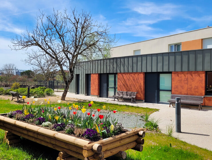 Un jardin thérapeutique ouvert au public et situé à l’arrière du bâtiment, favorise l’inclusion de la Maison et de ses résidents au sein de la commune et de ses habitants.